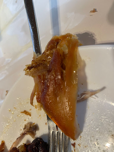 Meine Tochter brachte mir heute Grillhähnchen mit. Leider absolut unterirdisch, total vertrocknet, Foto zeigt nicht die Haut sondern das Fleisch unterhalb. Sogar der Hund tat sich schwer das zu kauen. Gekauft wurde gegen Mittag also zur Hauptzeit. Definitiv das letzte Mal, Kauf mir mein Hähnchen wieder beim Metzger, zart, saftig und...