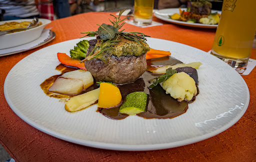 Read moreEssen top - Location flop. Das Essen ist wirklich, wirklich lecker, wenn auch recht hochpreisig! Da wir zunehmend zu einer "Ich-gehe-lieber-essen, statt-selbst-kochen-Gesellschaft" werden, können logischerweise die Restaurants immer höhere Preise für gutes Essen verlangen. Die Gerichte auf der Karte sind vielseitig und die Auswahl der einzelnen Speisen ist sehr gut getroffen und variantenreich (vor allem die Salatplatte "Weltenbummler", sehr empfehlenswert). Was ich sehr schätze, ist, wenn eine Speisekarte nicht 100 Gerichte aufweist; die wenigen aber qualitativ hochwertig sind. Es handelt sich um ein älteres Restaurant in einer nicht so angenehmen Umgebung, welches nur durch ein neueres Interieur und diverse Accessoires punkten kann, ansonsten ist es dort viel zu eng. Zu viele Tische (man sitzt in der Nähe des Zapfhahnes) auf engstem Raum, welches für ein schlechtes Raumklima, was Geräusche und vor allem GERÜCHE angeht, sorgt. Das, natürlich, notwendige Klopfen der Schnitzel empfanden wir als absolut störend!!! Fazit: Wer sehr gut essen möchte und enge und viel zu hoch temperierte Räumlichkeiten mag, und anschließende Essengerüche in der Kleidung als nicht störend empfindet, dem kann ich dieses Restaurant nur...