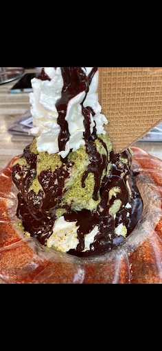 Read moreDas Eis ist gut..doch der Service ist Katastrophal..Ein Mitarbeiter lag schon fast über den Tresen und war mit seinem Smartphone beschäftigt..sodass nicht mal ein Hallo von ihm kam..der andere Mitarbeiter Legt die Waffel ins Eis und macht auch die Kasse ohne Handschuhe zu benutzen..Einfach nur Schlimm!! Nachdem der Mitarbeiter vom Tresen aufstand...räumte er die Sitzkissen um 19:40 Uhr schon weg..(Ohne Maske) bewegte er sich draußen an den Tischen und auch drinnen lief er an die Gäste ohne Maske vorbei..Die Gäste die noch da waren..waren schon dazu bedrängt aufzustehen (Feierabend!!) Der Mitarbeiter mit der (Glatze) ist auch nicht besser einfach nur unfreundlich !👎🏻 Haben auch einige Kollegen/Nachbarn bestätigt.. Naja..Für die...