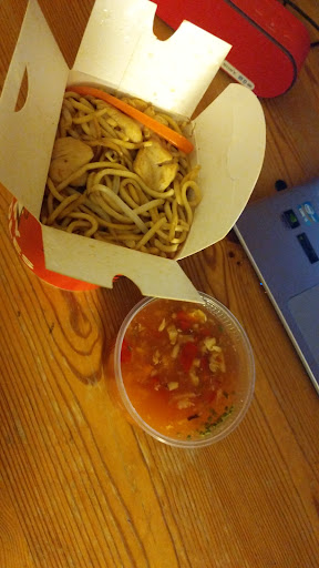 Katastrophe, hab schon viel gesehen, aber hier gewinnt das Wort eine neue Dimension. Ich hatte miitags zum Mitnehmen gebratene Nudeln mit Ente. Eigentlich nicht so schwer, denkt man. Aber hier gab es nichts, was wenigstens mittelmäßig gewesen wäre. Nudeln in Spaghettiart, leicht verkocht, nicht angebraten, Gemüse musste man mit der Lupe suchen, zwei Sorten konnte ich differenzieren, Karotte und Lauchzwiebel, alles nahezu ungewürzt, oben drüber eine tockene, sicher schon lange liegende Ente mit dicker Tempurapanade in der Friteuse erwärmt. Dazu gabs extra in einem Plastikschälchen eine relativ langeweilige braune Sauce, vermutlich aus Fertigsaucen gemixt. Leider zu wenig, um dem geschmacklosem Rest wenigstens ein bisschen Pep zu verleihen. Das einzig gute war, dass ich trotz richtig Hunger bereits nach einem Viertel der Portion absolut bedient war und den Rest in den Müll kippte - meiner Figur und Gesundheit zuliebe. Die teils guten Rezensionen kann ich nicht nachvollziehen, traue mich allerdings nicht wirklich, dem Laden eine zweite...
