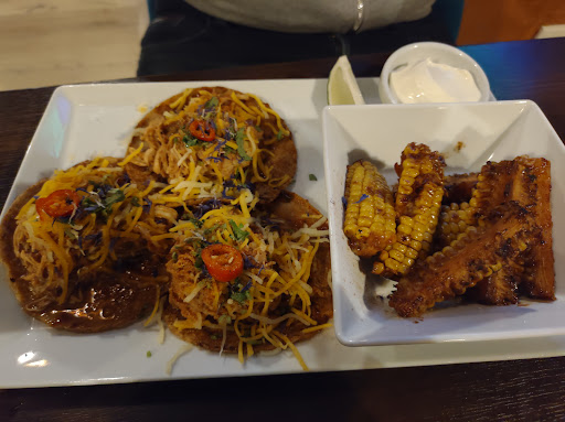 Read moreDieses Restaurant ist nicht empfehlenswert - allein schon, wenn man sich die Antworten des Besitzers auf diverse kritische Rezensionen durchliest. Hier meine Erfahrung: Bei Ankunft wurden nur zwei Speisekarte mit an den Tisch gebracht, obwohl die Reservation für mehrere Gäste war. Wir mussten nachfragen, um weitere Menükarten für alle Gäste zu bekommen. Die Wartezeiten waren viel zu lang. Von der Bestellung der Getränke bis dieselben an den Tisch gebracht wurden vergingen mindestens 15 Minuten. Wir saßen eine Stunde am Tisch bevor wir Essen bestellen konnten - auch dies nur nachdem wir mehrmals auf uns aufmerksam gemacht haben, von selbst kam leider keine Bedienung an unseren Tisch. Bis das Essen kam, vergingen noch mal 30 Minuten. Zu allem Übel fehlte ein Gericht und wir mussten die Angestellten zwei mal danach fragen bis nach weiteren 15 Minuten dieses an den Tisch gebracht wurde. Bezüglich des Essens, manche Gerichte, so wie bspw. "pulled chicken enchiladas/chimichanga", sind eintönig und bestehen zu 90% aus Fleisch. Ein wenig Varianz in den Zutaten (Konsistenz und Geschmack!) würde hier gut tun, so wie etwas Bohnen, Mais oder Paprika. Alternativ wäre es angebracht, bei Enchiladas und Chimichanga einen frischen Salat wie zB Pico de Gallo oder ähnliches an der Seite zu reichen, da diese ansonsten doch sehr trocken sind. Auch zu Beilagen (dips, pico de gallo, guacamole) sollten Löffel gebracht werden, um diese, bei Bedarf, zwischen allen am Tisch sitzenden teilen zu können ohne das eigene Besteck nutzen zu müssen. Nach dem Essen - alle waren offensichtlich fertig - fragten die Bedienungen für jeden Teller einzeln, ob man diesen denn abräumen dürfe. Merkwürdig, da dies selbstverständlich sein sollte. Alles in allem eine sehr enttäuschende Erfahrung, die Kompensation für das vergessene Essen war eine Frechheit angesichts der langen Wartezeiten und des wiederholt notwendigen...