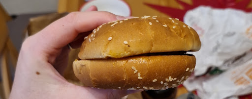 Vor uns waren nur zwei weitere Gäste. Wir haben geschlagene 25 Minuten auf unser Essen gewartet (4 Burger, 2 Pommes, 2 Getränke). Die Burger waren dermaßen lieblos dahin geklatscht. Auf den Whoppern so gut wie kein Salat oder Tomate, die Burgerbuns verbrannt.
