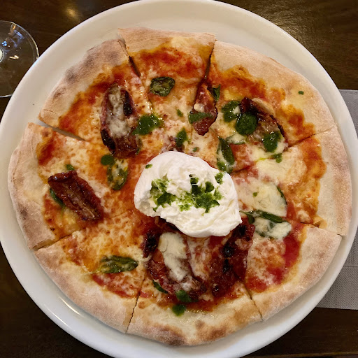 Read moreUnser erster Besuch. Ambiente äusserlich der Grund unserer Lokal wahl. Mit 18:30 Uhr früh heute auf Essen suche. Es wäre alles reserviert. Wir bekommen zu zweit noch einen kleinen runden Tisch in der Ecke , nett gemacht mit Hochstühle, alles ok. Bis 19:30 Uhr füllt sich die grosszügige Platzgestaltung. Das Ambiente ähnelt einer Bar. Hohe Decken , etc. sehr nett. Der Service lässt zuerst auf hochwertige Küche schließen, das extra heute " Pizza Diavolo " und "Nudeln mit Burrata" die getrockneten Tomaten waren nur 1/2 von einem Stückchen vorhanden. Geschmacklich i.O. aber Menge hätte etwas mehr sein können für den Preis ( knapp 16 Euro). Die Karte sehr spartanisch auf Pizza und Nudeln begrenzt. Salate als Vorspeise..... Getränke/ Wein musste man separat erfragen. Die Auswahl ebenfalls begrenzt. Cola oder Fanta gibt es wohl nicht, stattdessen Säfte. Personal ist freundlich. Mein Eindruck : hübsches Lokal, nettes Ambiente. Für einen Wein mit einer Gemeinschafts Pizza auf dem Tisch ok, aber zum Essen gehen nicht mehr meine Wahl, weil die Gesamt Auswahl einfach zu...
