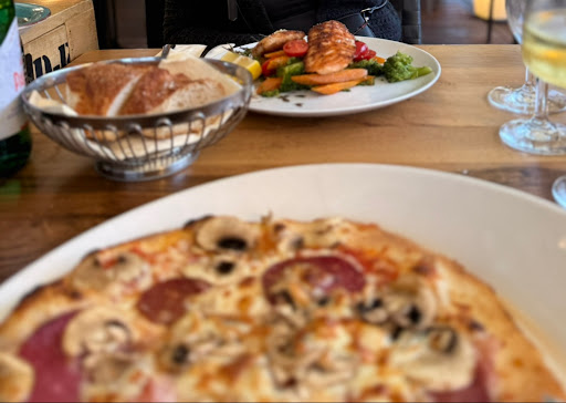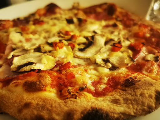 Read moreDas Restaurant ist zu empfehlen. Das Essen war gut, als Vorspeise hatte ich einmal Bruschetta für 2,50€mit frischen Zutaten. Das Brot war knusprig, Tomaten und Basilikum waren frisch und reichlich. Dazu Olivenöl und etwas Salz aus der Mühle. Als Hauptgericht eine Pizza Dynamit mit Chili, Peperoniwurst und Zwiebeln (statt Champignons) für 8,50€. Die Pizza wird wohl auf dem Blech gebacken, der Boden ist gut, könnte etwas dünner sein und dürfte gerne vom Stein kommen, aber das ist auch Geschmackssache. Dazu Mineralwasser (Gerolsteiner 0,25l) für ebenfalls 2,50€ und einen sehr guten Primitivo di Manduria für 5,00€ (0,2l). Als Abschluss einen Espresso Dopio für 3,00€ der ebenfalls gut war.