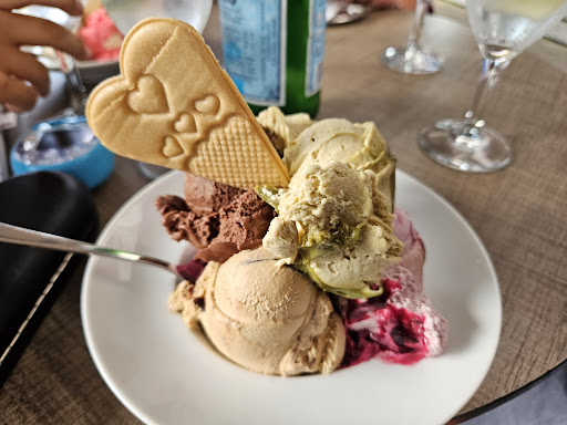 Ice cream was delicious. We arrived and we were welcomed by a young man , very politely. We couldn't speak German and he offered another employee to assist us. Everything was going smooth and we were enjoying our time there. Big variation on ice creams, coffees, pizza and much more. When it was time to leave , nobody was coming to our table to pay the bill. The waitress who took over our table was ignoring us. We tried to get her attention, she saw us and replied, "yes I"m coming ". 10 minutes passed by and she was all over the place serving and getting payments from around us , but not our table. The time was going by and my company went and talk to her to pay and go, again , she said she is coming but never showed up. Finally at the end one another employee saw what was going on and said to the other waitress to come and get paid. They need to work on their waitress. Specifically the one girl. I don't want to pint point which one but I am sure they know which one is it. We would have a pleasant experience and leave a 5 point review if it wasn't for that girl. She ruins...