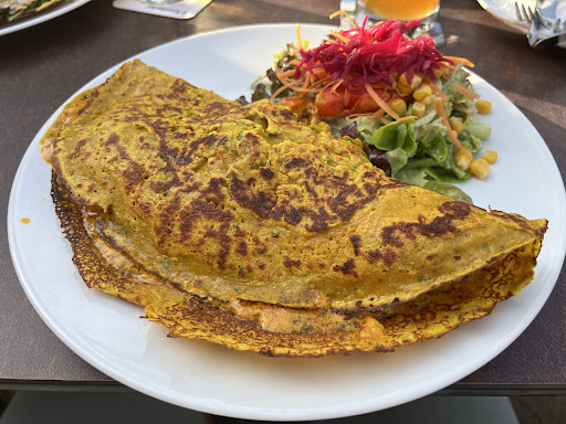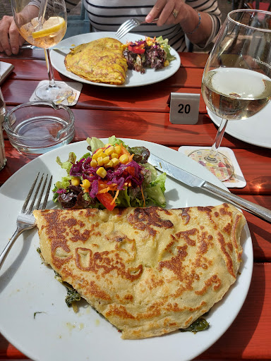 Read moreNice location in the center of Hofheim; outdoor seating with a pleasant atmosphere; large selection of entres to choose from; fair prices. My wife and I selected Pfannkuchen (pancakes) with two different fillings...hers had Indian vegetables and sauce, while mine had steamed spinach with gorgonzola. I asked the waitress to add mushrooms, but she forgot to tell the chef or the chef forgot to put them in. Nevertheless, both were very good...and there's a small salad on the side. The only drawback was the less-than-enthusiastic wait staff. Otherwise it would have been given...