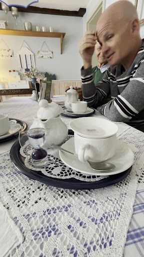 Mann muss sagen, dass die Preise völlig in Ordnung sind. Jedoch finde ich dass dieses Café viel potential besitzt und wenig daraus macht. Die Stuben sind für so viele Menschen täglich viel zu klein. Heute habe ich dieses Café besucht, und bemerkt, dass der Ansturm sehr hoch ist. Denn wenn es schon Wartelisten für die Tische gibt, scheint ja alles gut besucht zu sein. Mangelhaft finde ich beispielsweise die Größe des Ladens. Heute z.B. waren extrem viele Leute im Laden, und man konnte sich kaum bewegen. Ganz zu schweigen davon, dass man an jeder zweiten Ecke irgendwo drangekommen ist. Der Laden ist viel zu eng eingerichtet. Alles wirkts so aufdringlich und man hat aufgrund der vielen Leute keinen Spaß sich etwas in Ruhe anzusehen. Gegen die vielen Menschen kann das Café wenig machen. Dass sollte es ja auch nicht. Aber wenn der Besuch täglich so hoch ist wie heute, dann müssen ja auch die Kassen klingeln. Kann man da nicht eine zweite Immobilie kaufen um überall ein wenig Platz zu schaffen? Ich denke das würde allen beteiligten sehr helfen. Auch im Café selbst konnte man nicht richtig zur Ruhe kommen, da man wie auf einem Bahnhof saß. Dadurch das alle Stuben aneinander gereiht sind, gehen ständig Leute an einem vorbei. Man hatte wenig platz auf den Stühlen, weil alle sehr dicht beieinander standen. es machte den Eindruck, als wenn man an einen Tisch für 4 Personen versucht 8 Stühle zu stellen. Mit der Aufteilung auf ein zweites Haus wäre auch dort für eine Menge platz gesorgt. Fakt ist also das es überall am Platz mangelt, und das der Durchgangsverkehr zwischen den Stuben sehr störend ist. Es gab noch eine Menge anderer Gründe warum ich das Café keinem weiterempfehle, allerdings dauert es jetzt zulange diese Aufzuzählen. Die hier genannten Punkte finde ich als Kunden am unangenehmsten. Man muss allerdings auch positiv sagen: Der Kuchen ist sehr lecker. In anderen Bewertungen hab ich gelesen, dass einige Kunden die Selbstherstellung der Kuchen bezweifeln. Ich glaube aber schon das die Torten dort selbst gemacht sind (der Imagefilm hat mich jedenfalls überzeugt). Wie auch am Anfang schon gesagt, die Preise sind vollkommen in Ordnung, und die Herzhaften Mahlzeiten sind schön angerichtet. Ich kann mir auch gut vorstellen das der Kauf einer weiteren Immobilie einfacher geschrieben als getan ist. Jedoch wäre es meiner Meinung nach ein Gedanke wert. Eine Sache kann ich aber nicht verstehen: Am Eingang des Ladens stand ein Schild, dass das Fotografieren im Laden untersagt ist. Verstehen kann ich dieses Verbot nicht, weil es im Laden zwar auch den ein oder anderen schönen Artikel gibt, jedoch nichts Weltbewegendes. Ich meine wenn ich etwas Verkaufe und Fotos davon werden beispielsweise im Internet veröffentlicht, haben ja auch potentielle Interessenten die Möglichkeit die Produkte zu sehen. Wenn den Leuten dann etwas besonders gut gefällt, können sie schließlich vorbeikommen und sich das von ihnen Favorisierte Produkt ansehen und vielleicht auch kaufen. Ich denke nicht das es Geschäftsschädigende Auswirkungen hat, dieses Verbot aufzuheben. Naja, die Eigentümerin des Anwesens wird sich aber schon etwas bei diesem Verbot gedacht haben, was ich vielleicht noch nicht...