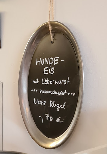 Read moreTrotz ungemütlichen Wetter, für unsere Küstenregion aber beinahe normal, stand uns der Sinn nach Eis. Eis rutscht und schmeckt immer. Wir, in der Nähe dieses Eiskaffee's, wollten das vielgelobte Eis einmal selber probieren. Wir wurden nicht enttäuscht ❣beide hatten wir einen Bananenbecher mit freiwählbaren Eissorten. Wir entschieden uns beide für die größere Portion. Alle Früchte, bei uns Bananen werden auf die selbstgemachte Eissorten gegeben. Mit Sahne ausdekoriert und als Topping mit tüchtig Schokosoße abgerundet. Dass das Eis selber hergestellt war, war deutlich zu schmecken bei mir ein kräftiger Vanillegeschmack und die Farbe war Vanillegelb. Wir genossen unser Eis sicher nicht zum letzten Mal auf den Holzstamm-Bänken vorm Haus. Die Eisdiele wurde in der Zeit, als wir unseres schlemmten, gut besucht, der Kundenfluss von jung /alt u. männl.wie weibl, ebbte nie ab. Zur Zeit ist der Laden zwischen 13°° + 18°° geöffnet, die Kernzeit also zwischen Mittagessen...