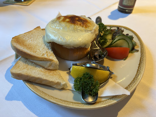 Read moreWir waren ein paar Tage zum wandern in der sächsischen Schweiz und hatten schon den ein oder anderen Versuch etwas leckeres und vor allem frisches zum Essen zu finden hinter uns. |Da uns das Erbgericht empfohlen wurde haben wir kurzerhand reserviert (was prinzipiell dort eine gute Idee ist!)|Ankunft: Parkplätze vorm Haus inkl. spannender Ein und Ausfahrt :)|Optischer Eindruck von draußen: sehr gepflegt und fein anzusehen. |Also dann rein in die gute Stube (vorher natürlich noch Hände desinfizieren)|Freundlich und herzlich begrüßt, wurde uns ein Tisch zugewiesen. |Dann das übliche: |Karte studieren - Frau fragen was sie nimmt- umdisponieren damit nicht zwei mal das selbe auf dem Tisch steht- sich über Wildsuppe auf der Karte freuen und über Eibauer Schwarzbier :) |Dann bei der wirklich freundlichen und maskierten (ja an den Augen sieht man das sie gelächelt hat) Bedienung bestellt. |Ein paar Minuten später kamen die beiden herrlichen leckeren frisch gezapften Schwarzbiere und ein kleiner Gruß aus der Küche: ein kleiner sehr leckerer Kräuterquark mit Baguettscheiben. |Das war schon mal lecker :) |Dann kam als Vorsuppe 2x Wildsuppe:|Bämm... der geschmackliche Knaller! |Schön heiß mit viel|Einlage und einer tollem pfeffrigen Note ... das war richtig gut!|Hauptgericht:|1x Steak Würzfleisch und 1x Thüringer Rostbrätl mit Senf bestrichen und mit gedünsteten Zwiebel zugedeckt |Beide Gerichte wurden mit Bratkartoffeln und Salat (mit einem frischen dillzweig garniert und irgendeiner Blume drauf, schön anzusehen und geschmacklich top!)|serviert und hat uns sehr gemundet! |Portion war schon fast ein bissl groß aber noch nicht überladen. |Nach dem Hauptgericht kam dann, und jetzt Achtung: FANFAREN 10000de FANFAREN!!! das Dessert: |Mit Blaubeeren gefüllte Knödel übergossen mit brauner Butter und Zimtzucker!|Wenn ich jetzt beim Schreiben daran denke juckts mich die 170 km zu fahren nur um diesen Hochgenuss wieder zu erfahren:) |UNBEDINGT PROBIEREN!!!|Fazit:|Sehr gerne wieder (schon reserviert für den Juli)!|Sehr freundliche und dabei natürliche bleibende Bedienung der man anmerkt das ihr a) der Job Spaß mach und b) sie sich über jeden Gast freut. Top! Weiter so!|Das Essen wie schon ausgiebig beschwätzte kann sich wirklich sehen lassen! Gute und ehrliche Hausmannskost aber mit Pfiff! Frischegarantie! ||Wir kommen wieder!||Ps: Fotos vom Essen sind immer so eine Sache .... deswegen poste ich nur das Dessert, weil ich glaube das mir das Foto ganz gut...