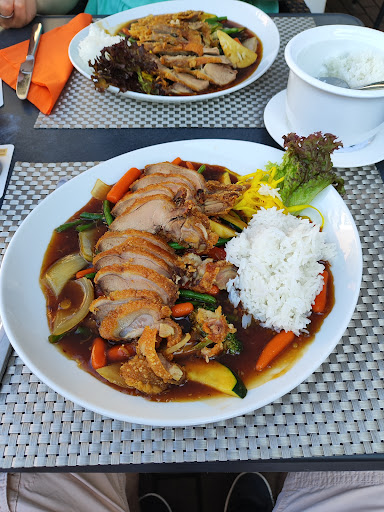 Read moreWir waren dort zu 7 Personen, es war lediglich ein weiterer Tisch belegt, dennoch bekam ich leider ein falsches Gericht. Ich wollte eigentlich weder etwas mit Curry, noch Süß Sauer, noch Nüssen im Essen und so schien mir lediglich ein Gericht zu bleiben, was ich auch nicht bemängeln möchte. Was ich dann aber etwas seltsam fand war, dass ich anstatt meinem Gericht Z4 die Z5 bekam, welche Erdnüsse enthielt. Leider machte es auch nicht den Eindruck als ob die, durchaus freundliche, Bedienung verstand was ich den von ihr wollte, ging nach dem 3. mal allerdings mit dem Teller weg und kam dann kurz darauf mit der "Z4" wieder. Etwas zu schnell um ein neues Gericht zuzubereiten, jedoch waren die Erdnüsse weg, dachte ich zumindest, denn 2 haben sie übersehen. Ein Alergiker wäre wohl nicht so glücklich darüber gewesen und auch hätte das eine Gericht mit Zitronengras und das andere mit Inger zubereitet hätte werden sollen, doch da ich leider nicht weiß wie Ingwer schmeckt konnte ich nicht sagen ob dieser auch darin war. Das Gericht ansich hat geschmeckt, jedoch war mein Erlebnis nicht das Beste. Fehler können passieren, darüber sehe ich auch gerne hinweg, aber das scheinbare wiederaufbereiten meines falschen Gerichtes sehe ich skeptischer.