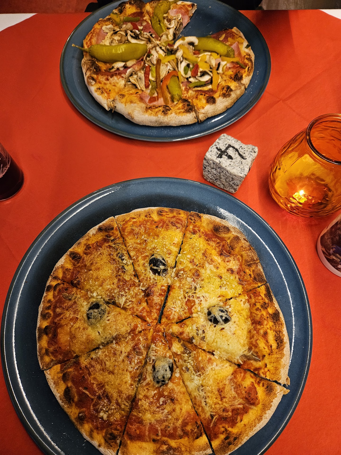 Wir haben eine große Auswahl an Pizzen bestellt. Der Tzaziki war leider keiner, für einen Gurkensalat ganz lecker, nur leider haben wir Tzaziki bestellt... etwas zu viel Knoblauch..