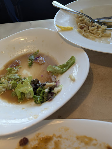 Beide Teller wurden abgeräumt und neu zubereitet. Als sie wieder zurück kamen, waren die Spätzle um die Hälfte reduzierte und von "in Butter gebraten" war keine Spur mehr. Haben einfach nach nichts geschmeckt.