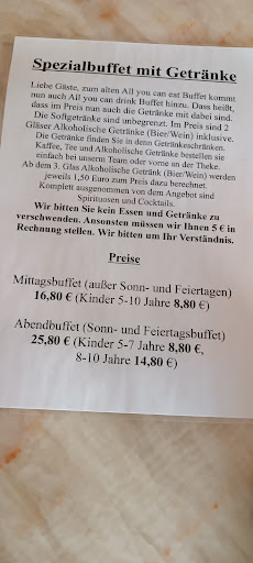 Read moreAls jahrelanger Kunde bin ich seit gestern Abend extrem geschockt - ich werde auch nicht mehr wieder kommen. 1.Die Preise sind mittlerweile unverschämt. 30 Euro pro erwachsene Person ist stramm - klar inkl. Getränke, aber wer packt denn mehr als 2 Getränke über den Abend verteilt?! Meine Kinder haben einmal 16 Euro gekostet (8Jahre) und einmal 5 Euro (3 Jahre). Die Kleine hat lediglich paar Pommes gegessen und der Große paar Pommes und 3 Nuggets. Vor allem für Kinder, die sonst nichts essen bzw. schon gar keine Mengen ist der Preis zu hoch.