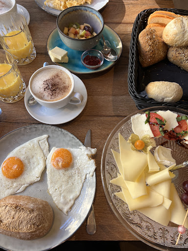 Nicht viel Auswahl, sehr kleine Speisekarte. Das Rühr-/Spiegelei war kalt, überteuert, 4€ für ein wenig Obstsalat ist zu viel. Die Teller sahen wirklich traurig aus, mit nur so wenig drauf. Meinen Freunden wurde jeweils nur 1 statt der 2 bestellten Brötchen gegeben. Nachdem uns statt 3 Obstsalat nur 2 gebracht wurden, hat die Bedienung drauf bestanden, dass wir nur 2 bestellt hätten und sogar eine weitere dazu geholt. Man hätte seinen Fehler auch einsehen und einfach einen weiteren bringen können. Man musste aber diskutieren. Fanden wir sehr komisch.