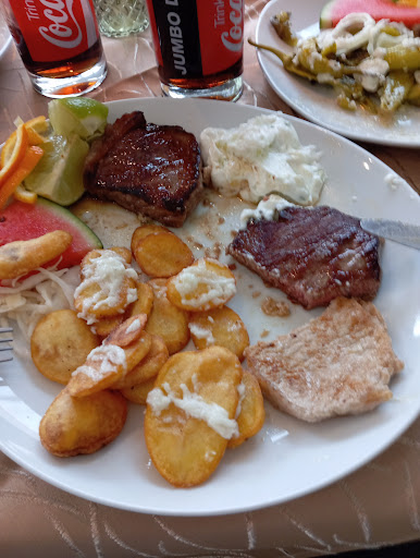 Man saß Schulter an Schulter und der Lärmpegel im Raum war so hoch, dass Gespräche untereinander praktisch unmöglich waren. Das Essen war enttäuschend: stark versalzen, lieblos angerichtet und in einigen Fällen sogar kalt serviert. Besonders die vegetarischen Gerichte waren eine große Frechheit. Diese waren auch unverhältnismäßig teuer. Die Salate wurde mit riesigen Gurken- und Tomatenstücken auf einem Teller serviert. Die Krönung war der Fetakäse, der kurz erwärmt wurde und mit kalten Zwiebeln und kalten Tomaten belegt, serviert wurde.