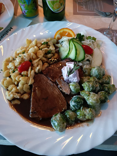 Read moreSehr kinderfreundliches Personal und richtig leckeres Essen. War zum ersten, aber sicherlich nicht zum letzten Mal da. Für Kinder gibt es eine ausmalbare Kinderspeisekarte. Unser Kellner (und sicherlich auch alle anderen Bedienungen im Restaurant) hat sich auf Augenhöhe zu unserem Lüdden begeben und ihn selbst gefragt was er essen und trinken möchte und auch ob er sein Essen vor uns möchte. Das habe ich bisher noch nirgends erlebt und finde es super. Das Essen selbst war ebenfalls köstlich. Die Corona bedingt abgespeckte Speisekarte ist gut zusammen gestellt. Zudem bin ich ohnehin der Ansicht, lieber weniger auf der Karte, das aber dafür perfekt zubereitet. Anmerkung meiner Frau: die "Hähnchen Pfanne India" würde sie anders bezeichnen. Geschmacklich hat sie eher weniger mit Indien zu tun (war trotzdem lecker). Es würde vielleicht eher Hähnchen Pfanne Tropicana" passen. Ich selbst hatte den Hirschbraten. Sehr zart und die Preiselbeeren in Form einer Creme haben sehr...