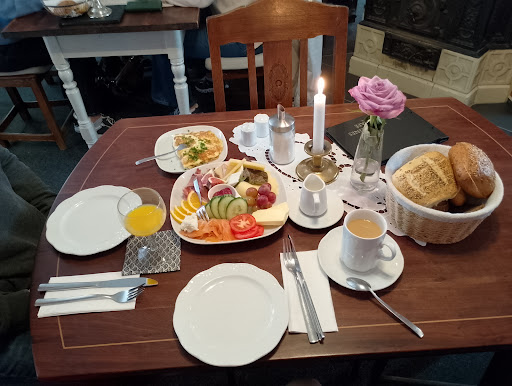 Haben jeweils einen kleinen Salat gegessen. Es befanden sich ein paar Blättchen Eisberg, ein Stückchen Tomate sowie ein Stückchen Gurke auf dem Tellerchen für je 3,50€ , Brot gab es dazu nicht. Desweiteren wurde der neue Tee ambooita (?) als Grüntee ausgegeben, der aber keiner ist! Ein anderes Mal , haben wir das Bio- Frühstück bestellt mit auf Nachfrage erteilter Auskunft, es handele sich um ein weizenfreies Brötchen. War auch falsch. Grünzeug gibt es zu diesem Frühstück nicht ,mit der Begründung auf Nachfrage , dass das Grünzeug nicht Bio sei, deshalb würde man es nicht zu einem Biofrühstück reichen!. Die Marmelade war auch nicht Bio, aber diese wurde dazu gereicht. Ebenso wird behauptet, dass Ei sei Bio ! Das einzige Bio an diesem Frühstück ist der Backensholzer Käse, der sich etwas verloren in Mini Stückchen auf dem Teller befand. Die Preise sind denkwürdig ! Die Portionen bescheiden! Die Bedienung ist allerdings sehr freundlich und nett, die Chefin muffig , launisch und unfreundlich! Das Ambiente ist sehr schön und gemütlich ist es auch, wenn nicht gerade an kalten Wintertagen die Tür sperrangelweit aufgerissen wird, um zu lüften.... Wir sind dort ab und zu eingekehrt, weil wir immer wieder die Hoffnung hatten, es könnte doch irgendwie nett werden. Waren jedoch jedesmal enttäuscht... Dann sollte man es einfach lassen, haben wir für uns beschlossen.....