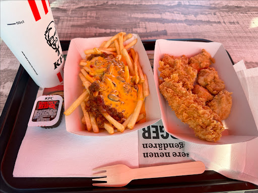Read moreAlso wir hatten gleich zwei sehr schlechte Begegnungen mit KFC Hamburg. Das erste mal KFC St.Pauli und das zweite mal KFC Bahnhof Hamburg. In beiden KFCs waren die Toiletten wirklich sehr verschmutzt. Das Personal ehr unterdurchschnittlich und man hatte den Eindruck das man mit seiner Bestellung ungelegen kommt. Im KFC St. Pauli waren die Hühnerfilets derart überwürzt das sie ungenießbar waren. Zwar bekamen wir nach der Reklamierung neue, aber sehr viel besser waren diese auch nicht. Pommes fast kalt und die Tische schmutzig. KFC Hamburg HBF toppte das Ganze. Ladenschluss 23.00 und um 22.00 waren schon alle Stühle hochgestellt und man erklärte uns das wir nur noch zum mitnehmen bestellen können. Zweimal Filets und Bites bestellt mit Pommes und Kaffee. 10,49 ein Witz für das was kam. Es gab in dieser winzigen Verpackung nur 10 Bites, schön durchgefettet und lauwarm. Pommes hätten noch mehr frittiert sein können und Kaffee gab es nicht da um 22,00 die Kaffeemaschine bereits aus war. Liebes KFC Team so geht es nun wirklich nicht..... Wir und unsere Kinder waren immer Fan von Euch und und haben gerne mal bei Euch gegessen. Da waren aber die Welt, Qualität, Toiletten und das ganze drumherum noch in...