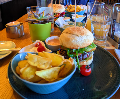 Sagenhaft. Sind mit bisschen Bauchweh los. Gerüchte gabs genug. Schickimicki, ständig ein Kellner hinter dir. Nichts von alle dem. Sehr freundlicher Empfang, man wurde klassisch zum reservierter Tisch begleitet (reservieren sollte man unbedingt!). Wichtigste vorweg, freundliche und aufmerksame Mitarbeiter die unauffällig aber souverän agierten. Großes Kompliment gerade an die Auubi‘s, besser gehts nicht. Zum Essen: Gruß aus der Küche… In anderen Restaurants ist das ne Vorspeise für fünf €, hier als kleine Aufmerksamkeit aus der Küche. Garnelen mit Brotchips, Aiolisauce… lecker! Vorspeise gebratenes Muschelfleisch. Hab ich für uns beide bestellt, reichte völlig. Tolles Muschelfleisch leicht gebraten mit Zwiebeln, Speck und Baguette dazu... toll. Hauptgericht Meine Frau hatte das dreierlei vom Fisch mit Bratkartoffeln und Senfsauce. Ich dachte immer ich mach die besten Bratkartoffeln, hier hab ich wohl meinen Meister gefunden. Krisch, Zwiebel, Speck dabei. Besser geht nicht (kleinen Tip: überflüssiges Fett vor dem Servieren abgießen dann gibts 100 Punkte!). Fisch perfekt gebraten, Senfsauce klasse, sehr lecker. Ich hatte den Burger aus der Tageskarte. Was soll ich schreiben?! Bester Burger den ich je gegessen habe. Selbstgemachter Bun, Pattie aus dem Färsenfleisch = perfekt. Sensationelle Kartoffelspalten, eher Chips, richtig lecker. Rund um 98 Punkte von Hundert. Was gibt es abzuziehen?! Ambiente… Geschmackssache aber sauber und freundlich. Kleidet doch passend dazu euer äußerst freundliches Personal auch freundlicher ein, nicht dieses Beerdigungsschwarz. Fazit: Tolles Essen, super freundliches Personal kommen gerne wieder. Habt unseren Jahrestag zu einem Erlebnis...