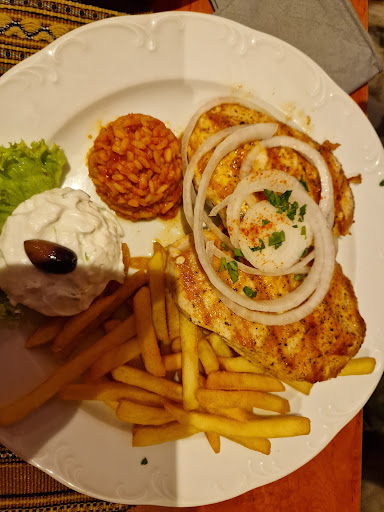 Die Teller hatten eine großzügige Menge Gyros das war für den Preis wie ich finde voll okay. Mir persönlich war dafür die Beilage so wie das tzatziki zu wenig. Die unfreundliche Kellnerin kam auch mit der Bestellung der Pommes durcheinander. Sie entnahm dem Besucher die Portion Pommes einfach. Im gleichen Moment griff sie wieder zur Beilage und stellte diese wieder zurück zum Gast wegen eines Missverständnis.Dieses wiederholte sich erneut. Das geht überhaupt gar nicht dieses Handeln! Man kann einem Kunden niemals das Essen erst entnehmen und dann wieder halb kalt hinstellen