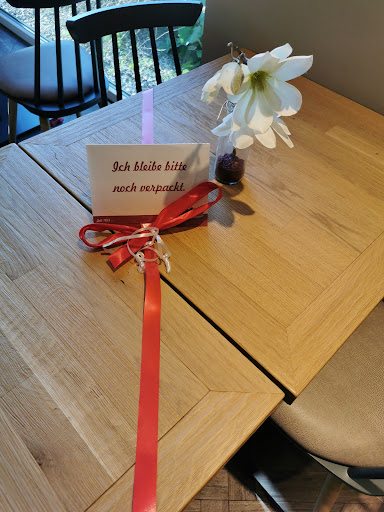 Read moreWir hatten uns mit 6 Personen angemeldet und reserviert. Frühstück war gut, wenn auch der Milchkaffe in anderen Bäckereien größer ist. Eine der beiden Bedienungen war sehr überfordert - obwohl alle Kunden geduldig in der Schlange warteten- ,was sie auch den der gerade dran war spüren ließ( so etwas geht gar nicht). Das machte die sehr freundliche Art der zweiten Bedienung aber wieder gut, sonst wäre es mit Sicherheit ein Grund zur Beschwerde gewesen. Frühstück ist Preislich etwas teurer, bei gleicher oder auch geringerer Menge, als in anderen Bäckereien. Etwas eng wenn man mit 6 Personen zum Frühstück an drei Minitischen sitzt, auf dem dann auch noch jeweils eine Blumenvase (wenn auch klein) mit drauf steht. Kleiner Tip: Wenn mehrere Personen angemeldet sind, vllt.ein Tischchen mehr und Tische wirklich...