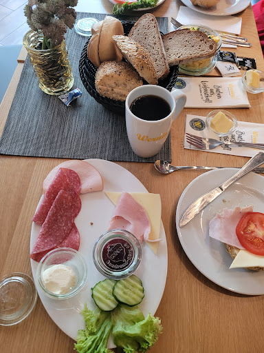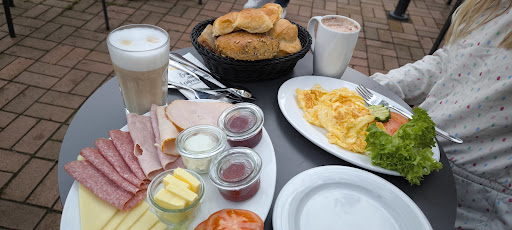 Read moreBeim ersten Besuch hatten wir keinen Hund mit und haben deshalb in angenehmer Atmosphäre im Innenraum gesessen. Das Frühstück war gut, mehrere Scheiben Wurst, Käse, leckere Brötchen, Marmelade und Frischkäse. Kaffee wird extra bestellt. Frühstück und Kaffee gibt es zu einem fairen Preis. Die Bedienung war sehr nett, auch als wir uns über die langsame Karte die über einen Bildschirm gezeigt wurde, lustig gemacht hatten. Beim zweiten Besuch wollten wir wegen des schönen Wetters und wegen des Hundes gerne draußen sitzen. Die Terrasse war sehr unsauber. Jede Menge Laub, Vogelfedern, unzählige Zigarettenkippen und Schmutz. Man konnte sehen das dort schon längere Zeit nicht gereinigt wurde. Da hatten wir keinen Appetit mehr auf das Frühstück und sind wieder gegangen. Wir haben keine Probleme mit ein paar Blättern aber dort war es...