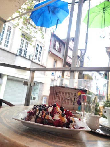 während unseres Aufenthaltes in Idar-Oberstein besuchten wir dieses Cafe... optisch schön und ansprechend. Es zu diesem Zeitpunkt waren nur 2 Gäste außer uns dort.