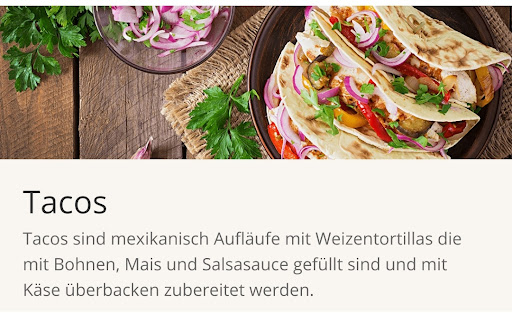 English: Have ordered several times at Pizza Royal. Except for the long wait, the food from the price-performance was always quite good. Now that. I expected something in my "taco order" that at least comes close to the picture below left. I got this disgusting something, see picture on the right. I do not know what to define but the first bites were an impertinence for my stomach, which has not yet found its equal. Something bad (quality and taste) I did not have to endure. But as the saying goes, "Once is always the first time." And also the last time. Absolutely not...
