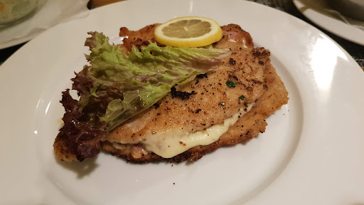 Die Schnitzel waren super zart, die Panande leicht wellig und kross. Meine Sahnesoße war super lecker, wobei ich überrascht war, dass die Sahnesoße nicht hell war, wie bei Sahne vermutet, sondern noch eine geheime Zutat hat, die der Chef wohl (verständlicherweise) nicht preisgeben möchte ;-) Ich musste mir sogar noch einen Nachschlag geben lassen, sooooo lecker war sie!!! Auch die Salatsoße war sehr gut, schön leicht, nicht zu dick, ideal für einen Sommersalat. Hier ist absolut nix mit "Essen aus der Dose" und "Fertigsoßen" oder sonstwas, wie ich in der ein oder anderen Rezension gelesen habe!!!!!