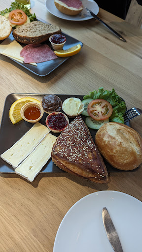 They also have ready-made belegte Brötchen (bread rolls filled with meat, cheese, salad, etc.), or you can order your own exactly how you like it — for example, a wholemeal roll with cheese, freshly prepared just for you. On top of that, they offer different breakfast options, and the coffee is excellent.