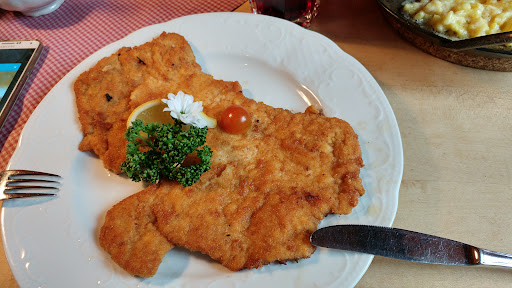 Dieses Restaurant wurde uns von mehreren Seiten empfohlen, also beschlossen wir, dort für einen Sonntag Nachmittag, 14:30 Plätze zum Mittagessen zu reservieren. Erste angenehme Erfahrung: Sonntags durchgehend warme Küche. Leider war dieser Tag dermaßen verregnet, dass wir unsere vor dem Mittagessen geplanten Aktivitäten nicht so durchführen konnten wie gewollt, also fuhren wir schon gegen 13:00 zum Gromerhof, ohne die Reservierung telefonisch zu ändern. Trotz gut gefüllten Saals führte man uns freundlich zu einem gut gelegenem Tisch. Es war reichlich Personal anwesend. Getränke wurden sofort aufgenommen und nach wenigen Minten gebracht. Zum Essen bestellten wir Schnitzel, Rostbraten sowie für unsere 10-jährige Tochter eine Erwachsenenportion Kässpätzle mit gemischtem Salat. Salat kam ebenfalls nach wenigen Minuten. Er war frisch und hübsch garniert. 15 Minuten später kamen die Hauptspeisen. Schnitzel und Kässpätzle waren sowohl von der Größe also auch vom Geschmack am oberem Rand der Erwartungen angesiedelt. Auffällig und anders als in den meisten durchschnittlichen gut bürgerlichen Gaststätten: alles war sehr hübsch garniert (inkl. einer kleinen Blume am Tellerrand). Der Rostbraten war wie bestellt Medium, das Fleisch war außen kross angebraten und innen rosa (ohne dass es blutig war). Die statt Spätzle bestellten Bratkartoffeln kam in einer extra-Schale. Geschmacklich und von der Konsistenz ebenfalls im oberen Drittel der Erwartungen. Einzig die Größe des Fleischstückes könnte etwas üppiger sein.