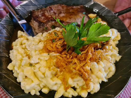 Read moreSelten so ausgezeichnet gegessen. Mein Mann hatte einen Rinderbraten. Perfekt zubereitet, butterweich und ein wahnsinns Geschmack. Ich hatte einen Hähnchenbrust Salat. Selten so einen liebevoll und geschmacklich hervorragenden Salat gegessen. Kein 0815 Dressing, selbst gemachte Croutons, und sogar mit Blümchen dekoriert. Unserer Tochter hatte Käsespätzle. Auch diese waren perfekt. Unsere Tochter hätte quasi lieber knusprig frittierte Röstzwiebeln gehabt ;-) . Dies ist aber natürlich Geschmackssache und wäre jammern auf hohem Niveau. Und obwohl wahnsinnig viel los war (mehrere Kommunionen, Geburtstagsfeier und das tolle Wetter in Verbindung mit dem typisch deutschen Hunger der Punkt 12 Uhr einsetzt) konnten wir sehr flott einen Tisch im Biergarten ergattern und obwohl uns gesagt wurde, dass es mit dem Essen etwas dauern könnte mussten wir nicht wirklich lange warten. Alle Bedienungen und die Dame die uns den Platz zu wies (ich glaube es war sogar die Chefin selbst) waren alle sehr zuvorkommend und super nett und freundlich. Sicherlich kostet das essen ein, zwei Euro mehr (uns störten die Preise nicht), aber es ist es definitiv wert und die Portionen sind großzügig.