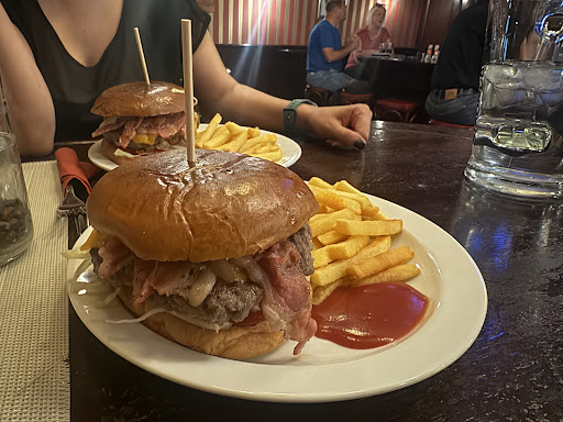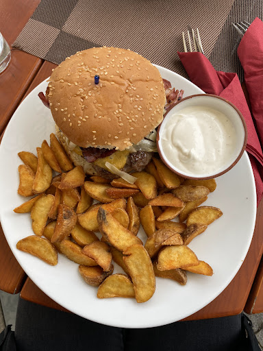 Read moreAuf Empfehlung vom Hotel waren wir mit 6 Personen da und haben drauĂen einen Tisch bekommen. Mit den GetrĂ€nken das hat soweit gut geklappt, aber insgesamt haben wir wohl einen schlechten Tag erwischt. Es lief nicht alles rund in der KĂŒche und viele GĂ€ste haben sehr lange auf das Essen warten mĂŒssen. Beschwerden haben das junge Personal ĂŒberfordert, aber man hat sich mehrfach entschuldigt und eine Runde GetrĂ€nke aufs Haus angeboten. Versalzene Pommes wurden neu gebracht. Wurstsalat, Hamburger und Schnitzel waren gut. Bratkartoffeln und Spiegelei waren nicht gelungen und das KrĂ€uter-Salatdressing war sehr ungewöhnlich. Scheinbar war da KĂŒmmel drin. Ein Hinweis darauf oder als Alternative ein klassisches Joghurtdressing wĂ€re schön gewesen. Leider ist deshalb der meiste Salat liegen geblieben. Die Lage ist sehr schön und wir haben wohl einfach etwas...