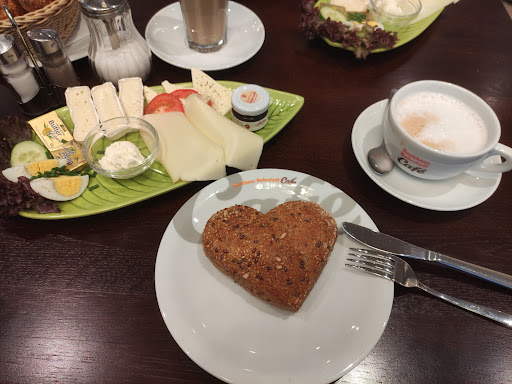 Sehr schönes Café mit leckerem Frühstück! Sowohl das Anti-Stress-Frühstück, als auch das Alles-Käse-oder-was? Frühstück hat uns sehr gut geschmeckt. Die Brötchen kann man sich selbst aussuchen. Das hat uns besonders gefallen. Der Kaffee aus dem Vollautomaten schmeckt gut. Das Café ist gemütlich eingerichtet und die Atmosphäre hier ist sehr schön. Da das Café hier noch sehr neu ist, sind die Mitarbeiter noch nicht gut eingespielt und alles dauert etwas länger. Da die Mitarbeiter freundlich sind, ist das allerdings kein großes Problem. Ich hoffe jedoch, dass es mit der Zeit nicht mehr so chaotisch ist. Es ist jedoch sehr wichtig, dass ein Kunde nach dem anderen bedient wird. Es sollte mitten in einem Kauf kein anderer Kunde vorgezogen werden. Das empfanden wir als relativ unhöflich. Deshalb ein Stern weniger. Alles in allem aber eine...