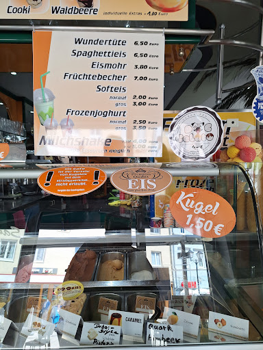 Besuch, Eis auf die Hand. Es war nebelig draußen, kein Tisch besetzt. Wir haben uns kurz hingesetzt und wurden augenblicklich sehr genervt davongejagt. Ich verstehe, wenn es voll gewesen wäre und wir jemanden den Platz weggenommen hätten…Aber so.