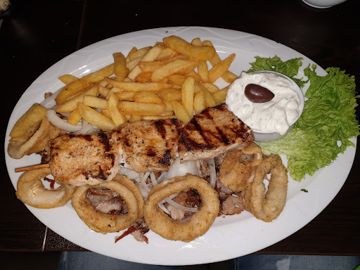 Read moreIch war auf der Suche neuer Restaurants, die ich noch nicht kannte, und bin bei den sommerlichen Temperaturen auf diesen Griechen gestoßen. Die Terrasse hat einen hübschen Eindruck gemacht, nichts spezielles, aber alles in Ordnung. Die Servicekraft hat auch alles soweit gut gemacht, für meinen Geschmack war die Frequenz zu klein um sich überhaupt etwas auszusuchen, weshalb ich 2 mal mit: wie brauchen noch einen Kurzen Moment antworten musste (2-3 Minuten) Was das Essen angeht, war ich leicht enttäuscht, weil ich schon deutlich besseres gegessen hab. Das Gyros war zart aber hatte fast keine Würzung, die Portion war etwas zu klein für den Preis und zu fast jedem Gericht gab es Pommes dazu. Ich finde es in Ordnung wenn es diverse Beilagen auszuwählen gibt, aber wenn fast ausschließlich diese zu wählen sind, und kein Reis was meine persönliche Wahl gewesen wäre, oder was auch immer, ist nicht adäquat für ein solides griechiches Restaurant. Es ist in Ordnung, Sauber und ordentlich, aber man bekommt für das gleiche Geld...