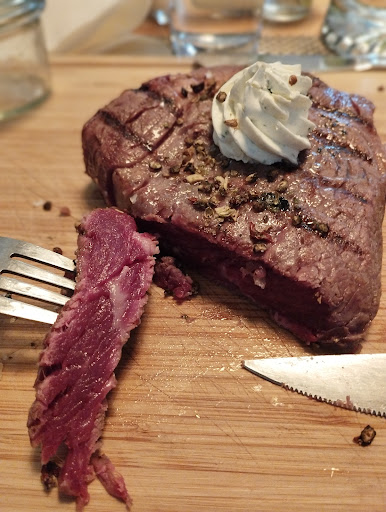 Bei den Kroketten war sofort klar "convienience food", die Fritten waren sicher nochmal in Stärke oder etwas ähnlichem gewälzt und dadurch sehr kross und gut.