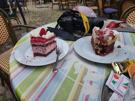 Read moreEin schönes kleines Eiscafe im Barocken Hinterhof mit außen und innen Sitzplätzen . Selbstgemachte leckere Torten und Kuchen wie Frischkäsetorte , Himbeerricottatorte , Pfaumenkuchen uvm. Auch die Eissorten ein Genuss alles sebstgemacht sowie zB. Sanddorn , Sahnegrießkirsch , Joguhrt -Amarena uvm. Personal war super freundlich doch trotzdem möchte ich gerne eine Anmerkung machen . Der junge Mann der bediente und dann auch das Geschirr wieder abräumte könnte einen Lappen zum Tische abwischen mitführen . Unser Tisch war leer und abgeräumt als mein Mann und Ich ankamen , die Eiskarte lag auf einem Erdbeersoßenfleck und war daher sehr klebrig , beim durchstöbern der Karte hatte ich dann einen Fleck von der Soße auf meinem weißen Oberteil , konnte es zwar auf dem WC etwas rauswaschen ist aber nicht Sinn der Sache wenn der Tisch und Karte sauber gewesen wäre . Auch auf dem WC waren dicke Spinngewebe in der Ecke am Lüftungsgerät das ohne Deckschutz dort angebracht ist . Positiv war das es eine Wickelablage dort gibt die bis 15 kg Kleinkinder hält . Aber trotzdem möchte ich dieses Eiscafe wärmstens empfehlen , denn die Anmerkung kann man schnell...