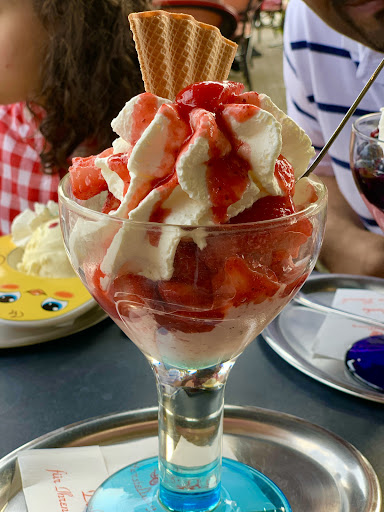 Read moreWhile worth the ice cream.... It's interesting to find out that you can not sit and eat unless you pat 25p more per person or order 5 euros worth of ice cream. My shock was created with a rude retort and when I pointed out that it was raining and wanted a coffee I was met with another rude retort. Portions were small and nothing was added as we were obliged to sit and pay the difference. Sad really as owner was present and rudely stared at...