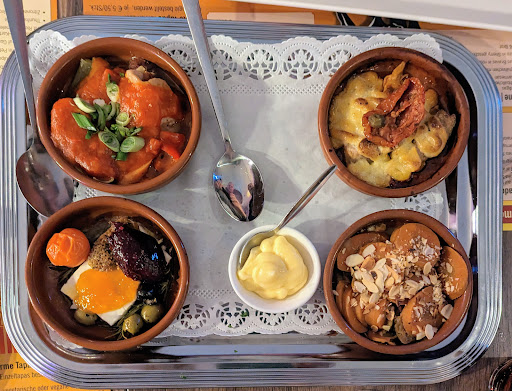 The tapas platter choices were interesting. Many choices..You can select ala carte or a predetermined group. The Mediterranean and the carne platters were delicious. 2 platters served 3 people. Good value.