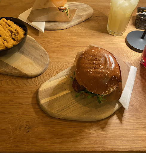 Ich hatte einen veganen Burger mit Pommes und Cola. Hierfür zahlt man 23 €. Der Burger war geschmacklich völlig in Ordnung, aber jetzt kein Highlight, daß den Preis rechtfertigen würde. Zudem war der Burger in der Mitte leider kalt....