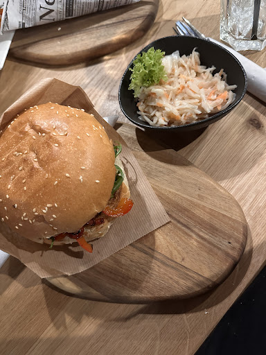 Mein Mann hatte einen Smash Burger (Fleisch). Dieser war so versalzen und trocken, dass er für ihn nicht genießbar war. So blieb mehr als die Hälfte des Burgers liegen.
