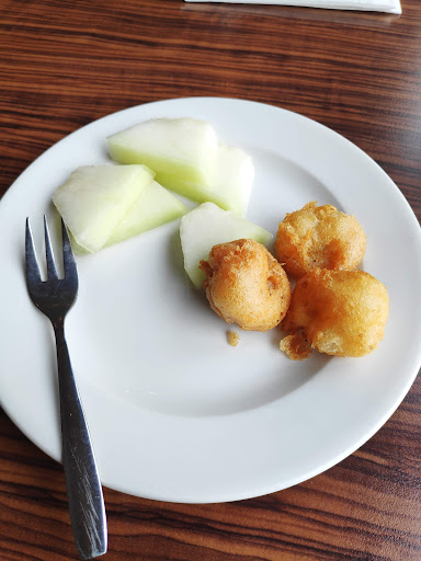 Read moreSuper lecker gewesen. Das Buffet war gut von der Auswahl her und jeder findet was für sich, kein Mensch braucht ein mega großes Buffet mit 30 verschieden warmen Sachen. Die Getränke waren kalt bei uns am Tisch mit 5 Personen waren alle Gläser angelaufen vor Kälte und man sollte Verständnis haben wenn es an sehr warmen Tagen nicht der Fall ist das die Getränke nicht mega kalt sind weil an sehr warmen Tagen kann die Technik auf Mal streiken. Die gebackenen Bananen sind wie gebackene Bananen die haben halt braune stellen und sind weich, habe noch nie irgendwo gebackene Banane gegessen die fest und weiß innen sind was auch nicht ganz passen würde. Zu den Toiletten kann ich nix sagen weil ich nie öffentlich Toiletten benutze weil ich selber in der Gastro gearbeitet habe und gesehen habe wie Kunden die Toiletten hinterlassen, da kann man während des laufenden Betrieb nicht anfangen die Toiletten zu Putzen das macht man vor Geschäfts Öffnung und nach Geschäft Schließung und zwischen drinen hat man auch nur die Zeit schnell Toilettenpapier, Handtücher und Seife aufzufüllen und den Mülleimer zu leeren, ich würde auch nicht wollen das der Kellner oder der Koch während des laufenden Betriebs anfängt Toiletten zu Putzen und dann weiter Geschirr anfasst und essen zubereitet wenn jede Person einfach die Toiletten sauber hinterlassen würde wären Gastro Toiletten oder öffentlich Toiletten nicht so eklig aber es braucht nur eine Person die das nicht macht und das in vielleicht in der 1 Stunde der Geschäfts Öffnung dann sieht es womöglich Mal nicht so sauber aus obwohl vor Öffnung gründlich...