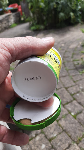 Read moreDer Becher Milchkaffee-Eis hatte am 03.08.23 nicht nur sein MHD vom 19.03.23 sondern vermutlich auch Stromausfall und den letzten Winter überlebt. Hat eklig geschmeckt, mit Haut drauf, und das für das Geld,... Immerhin zumindest nich giftig bei 3 Löffeln. Deshalb gibt es...