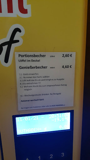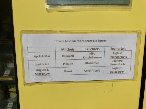 Read moreIch bin begeistert! Habe zusammen mit meiner Freundin schon immer mal ein Eis bei dem Eisautomaten geholt. Es ist wirklich von ausgezeichneter Qualität. Und mit dem Eisladen hat ein neuer Lieblingsplatz in Mindelstetten eröffnet! Man kann sich gerne selbst davon überzeugen, mit wieviel Liebe alles gemacht wird!