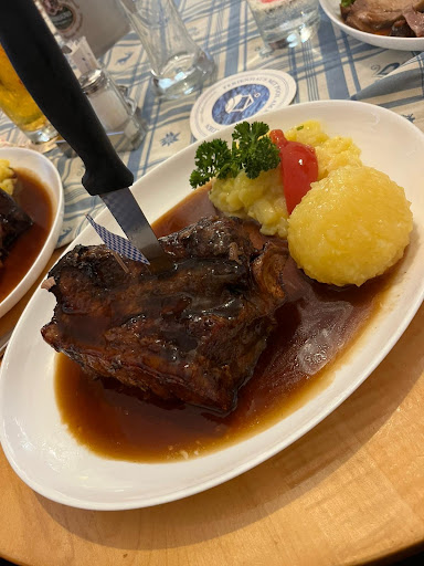 The service and atmosphere are wonderful with the traditional decor of a Bavarian Wirsthaus. The service is fast and the portions are oversized compared to the prices one must pay.