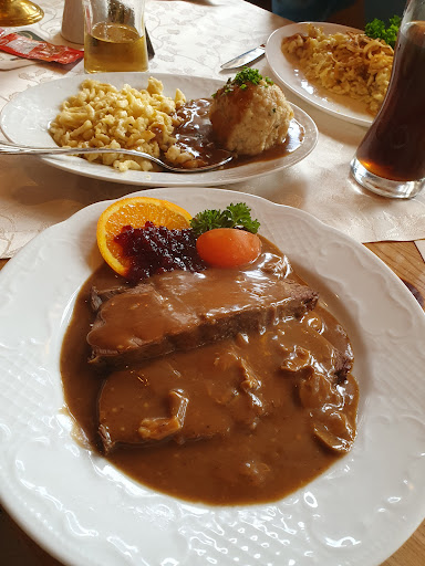 Das Essen ist gut bürgerlich, Preis-Leistung ist in Ordnung würde ich sagen. Großer Kritikpunkt: Keine Kinder-Speisen auf der Karte. Daher die Frage ob man den Schweinebraten auch als Kinderportion bekommen könnte. Kein Problem. War dann auch die halbe Portion (wir hatten auch die normale variante bestellt). Bei der Rechnung wurde dann aber sage und schreibe 1,-- abgezogen vom regulären Preis. Auf Nachfrage ob das so korrekt ist hieß es dann "jaja, das ist immer so, darum sagen wir immer dass sich das nicht lohnt weil nur 1,-- günstiger!" Auf die Anmerkung, dass das aber nicht gesagt wurde bei der Bestellung kam nur ein "Oh das hab ich dann vergessen...:" und das wars.