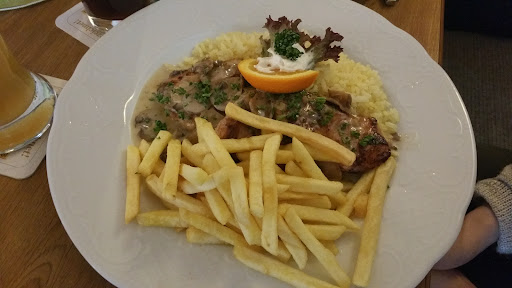 Das Essen ist eher unteres Mittelmaß; man wird satt, aber von Gaumenfreuden, Frische und Qualität, wie auf der Homepage beschrieben, war leider nichts vorhanden. Es beginnt bereits beim Betreten des Lokals, wenn man an einem Rollwagen voll vorbereiteter Salatteller vorbeikommt. An sich bestimmt nicht verkehrt, aber bereits mit Dressing versehen? Unser Salat war weich und matschig, als er uns serviert wurde. Anschließend der Sitzplatz: es gibt ausreichend Platz für alle, doch siehe da, das Tischtuch ist dreckig. Neben frischen Flecken vom Voresser und Krümeln von weiß Gott was finden sich ebenfalls ältere Flecken, die man anscheinend nicht mehr herauswaschen kann.