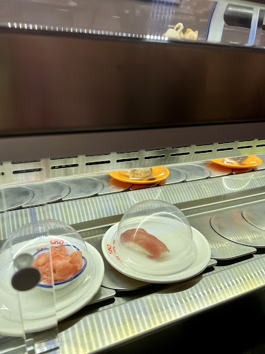 Essen kalt: Wer beim Japaner auf Windbeutel, Litschis, Orange und Donuts steht ist in diesem Restaurant richtig. Man muss erwähnen, dass alle Speisen auf dem Band frisch waren. Allerdings gab es beim Sushi eine enorm schlechte Auswahl. Nachgefüllt wurde nur sehr Zögerlich. Für Running Sushi hätte ich hier deutlich mehr Auswahl erwartet. Es wurden selbst bei Anfrage auf bestimmte Inside-Out Makis keine derartigen auf das Band gestellt. Das Band war nach einer Runde wieder fast leer , obwohl das Restaurant nicht mal halb voll war.