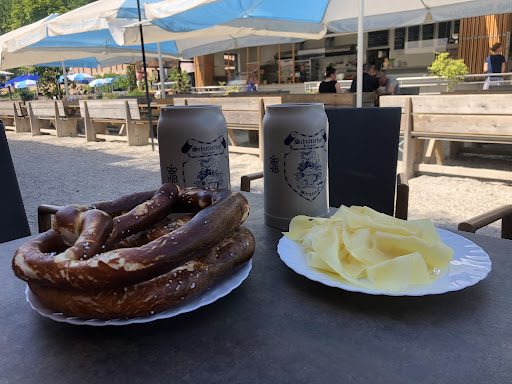 A typical beer garden in Ingolstadt with a huge open space where people can sit and enjoy their beers. There is also a kitchen which serve good food while also providing good service.